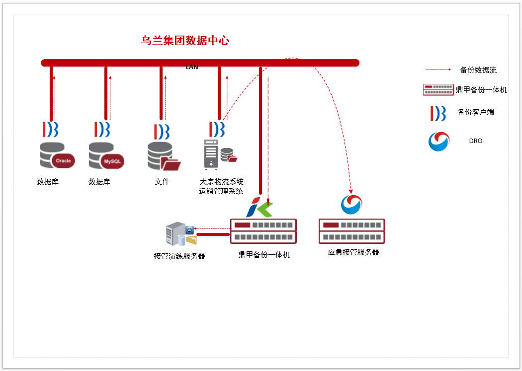 本次服務烏蘭集團的是鼎甲重磅打造的解決方案,基于鼎甲備份存儲一體機和DRO應急接管兩大產品組合,助力客戶實現數據保護和業務連續性的建設目標,最大化避免由于病毒、軟硬件故障、人為誤操作導致的數據丟失損壞和業務停頓。