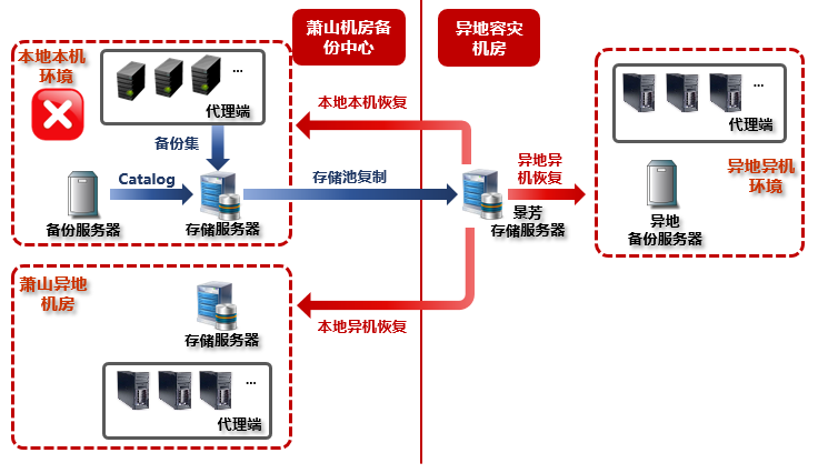 2、同時在景芳、蕭山備份機房部署異地存儲池,實現數據異地災備,避免災難性事件造成本地數據的丟失;