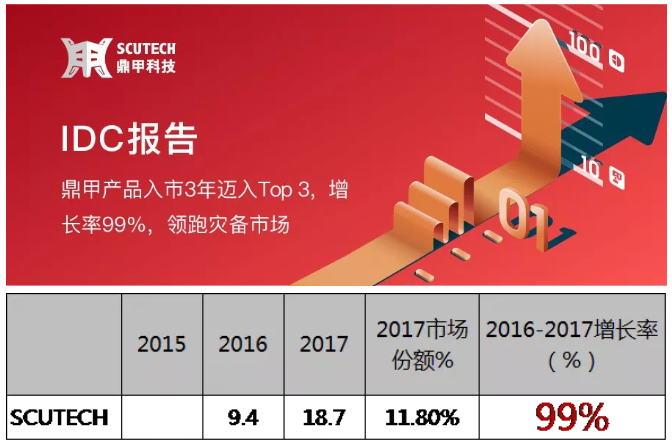 鼎甲科技于2009年成立,沉心研發(fā)6年,2015年首款產(chǎn)品問(wèn)世。IDC最新發(fā)布的《中國(guó)備份一體機(jī)(PBBA)市場(chǎng)廠(chǎng)商份額》報(bào)告顯示:截至2017年,鼎甲在短短三年內(nèi),市場(chǎng)占有率已邁入TOP3。同時(shí),在其它主流友商市場(chǎng)規(guī)模下滑的情況下,鼎甲快速追趕、逆勢(shì)增長(zhǎng),同比2016年增幅高達(dá)99%。