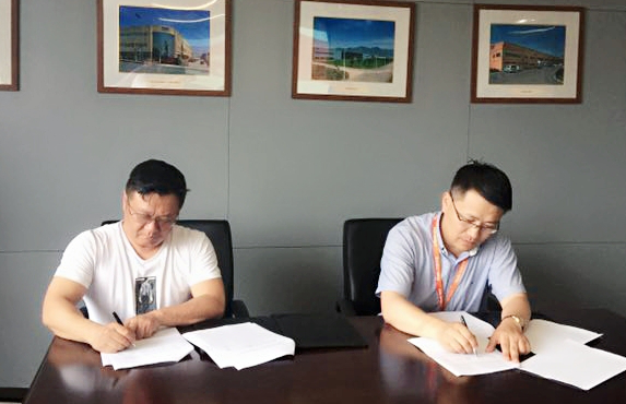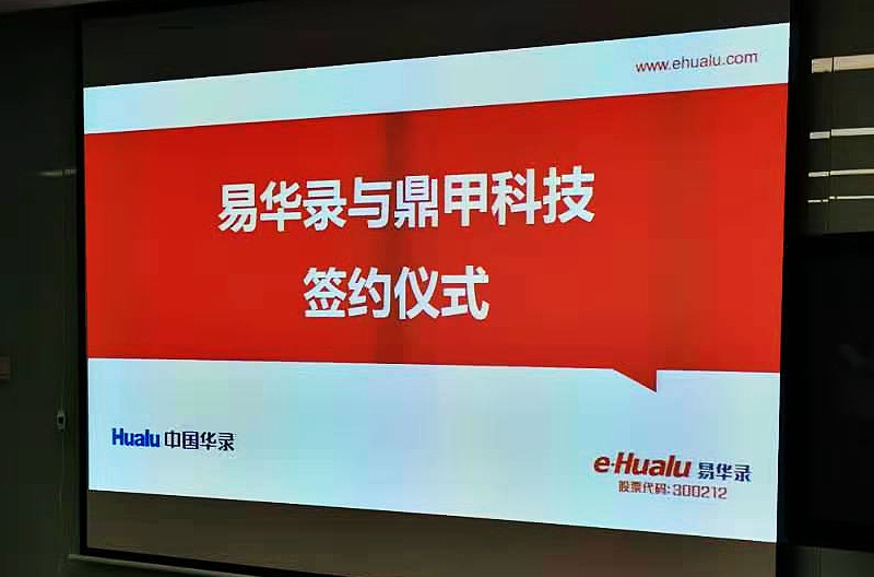 鼎甲產(chǎn)品總監(jiān)汪潼(左)與易華錄D-BOX事業(yè)部常務(wù)副總李德杰(右)簽約