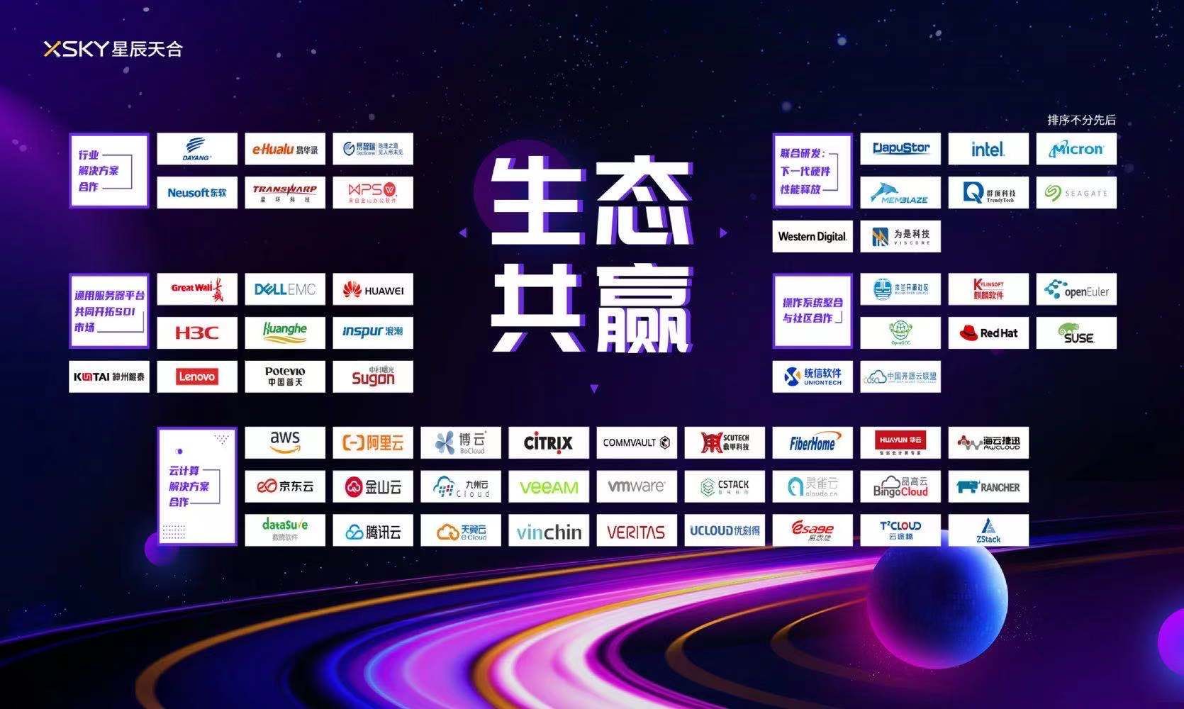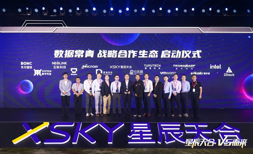會上,XSKY聯合鼎甲、英特爾、VMware、世紀互聯、華控清交、群頂科技、圖譜科技、日志易、東方國信、美光科技、星環科技、云軸科技等來自數據中心 、云廠商、數據服務等領域的十多家合作伙伴,共同啟動“數據常青戰略合作生態”,一道為客戶打造基于云邊協同形態的、圍繞數據存儲、數據管理和數據應用為核心的服務生態,為數據“匯、存、管、用”全生命周期的管理保駕護航,賦能下沉市場加速數字化轉型升級。通過此次啟動儀式,鼎甲與XSKY將充分發揮自身優勢強強聯手,持續加深生態合作,共同為廣大政企客戶提供高效可靠的技術解決方案!