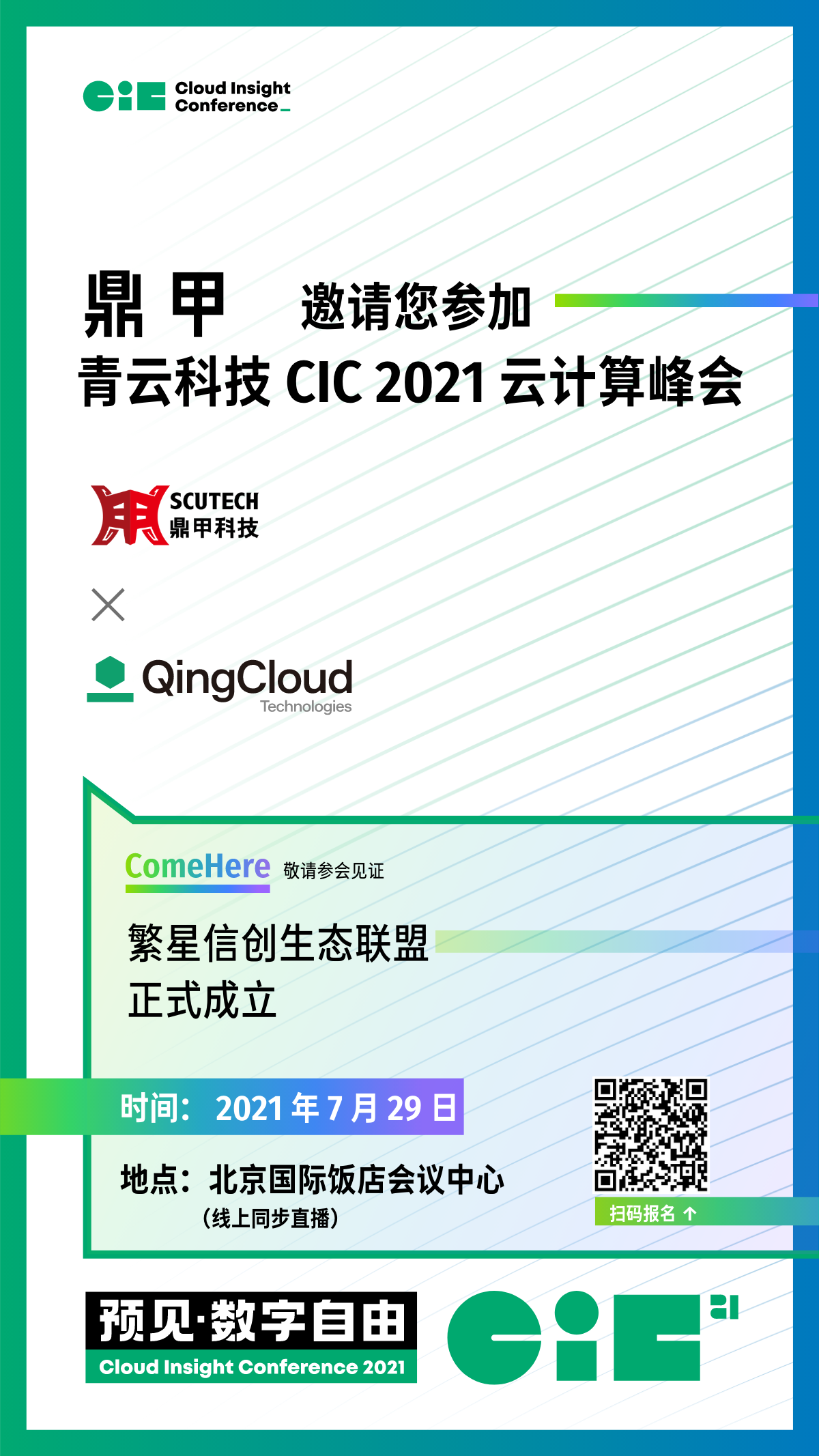 7月29日,青云科技CIC 2021云計算峰會在京舉行,作為青云科技的重要合作伙伴,鼎甲將受邀出席,與眾多行業(yè)大咖預(yù)見數(shù)字自由,探索數(shù)字賦能新方向。
