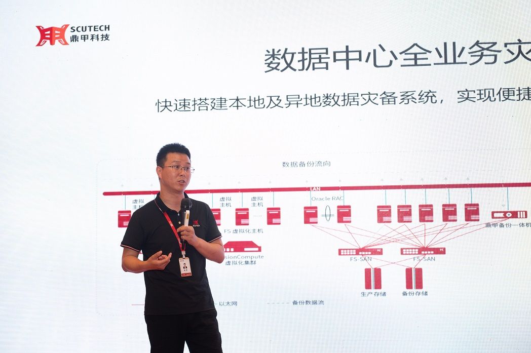 隨后,宏杉科技產品部副總工謝勇帶來了《一站式信創存儲方案》。宏杉科技是集存儲產品研發、生產、營銷及服務于一身的中國自主高技術企業,主要提供SAN、分布式文件、對象等存儲產品。宏杉科技作為鼎甲的戰略級生態伙伴,在方案架構融合上推出了多種存儲備份容災聯合解決方案,能夠更多地應用到高端復雜用戶場景,實現多場景下的有效支持。隨著雙方合作深化,有望迎來更廣闊的市場。