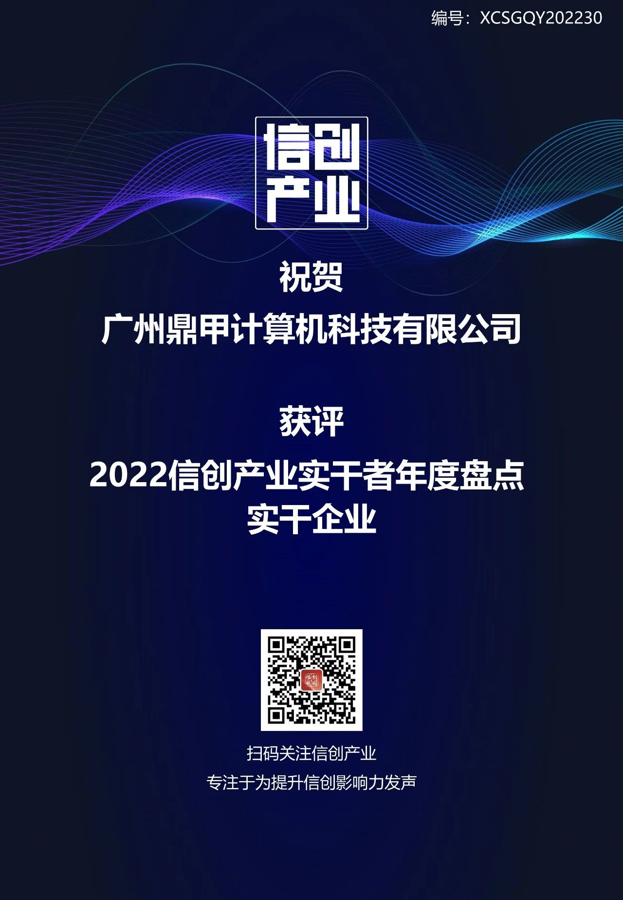 2023年1月12日,由“信創產業”主導開展的2022年度信創產業實干者年終大盤點結果公布,鼎甲專注于數據保護領域,以突出的產品研發能力與信創綜合實力,成功入選“2022信創產業實干者全景圖”,并獲評“2022信創產業實干者企業”稱號。