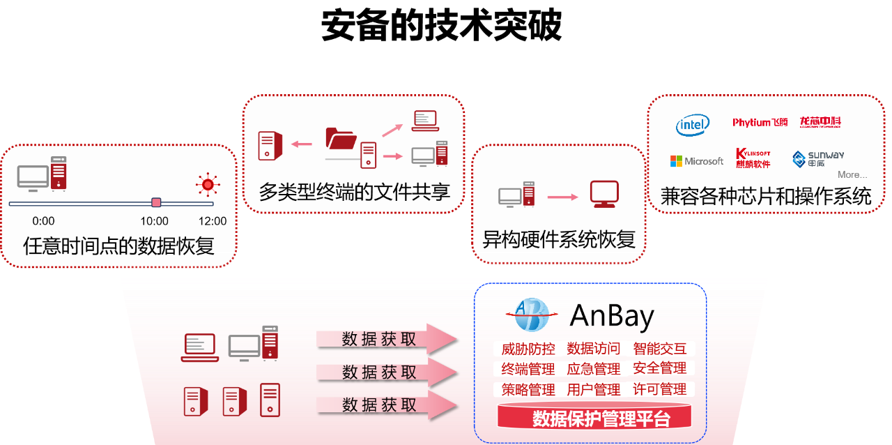 現在,有了安備,企業可以輕松設定智能化的備份策略,完成終端設備的統一數據保護和文件分享。無懼病毒攻擊、系統崩潰、人為誤操作導致的數據丟失,安備的一鍵恢復功能可以快速將終端設備恢復到災難發生前的時刻。此外,新設備的系統遷移和用戶之間的文件傳遞都可以通過安備平臺輕松實現,為企業提供簡便的使用體驗和卓越的數據保護服務。”