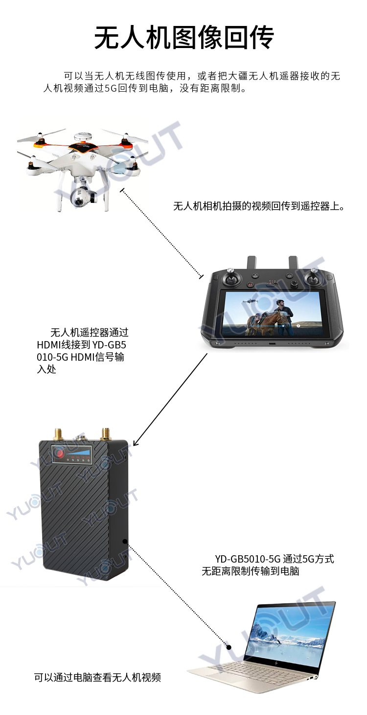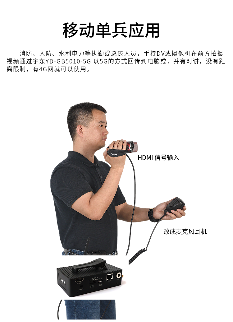 YD-GB5010-5G設(shè)備基于先進(jìn)的 H.265 視頻編碼技術(shù)和 5G 無線信道捆綁傳輸技術(shù)開發(fā)的新一代產(chǎn)品。支持支持 5G、4G 網(wǎng)絡(luò)模式,采用 H.265(HEVC)超低碼率,F(xiàn)EC 前向糾錯(cuò)技術(shù),獨(dú)有的 UDP 快速冗余容錯(cuò),PID 控制的自適應(yīng)帶寬編碼和傳輸, 1M 輕松傳輸送 1080P 視頻。