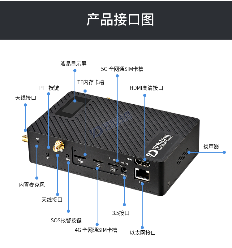 YD-GB8010-5G便攜式高清視頻終端采用嵌入式系統架構,采用高性能H.264/H.265編解碼處理器設計。設備支持視頻采集、編碼壓縮、傳輸、雙向對講功能。