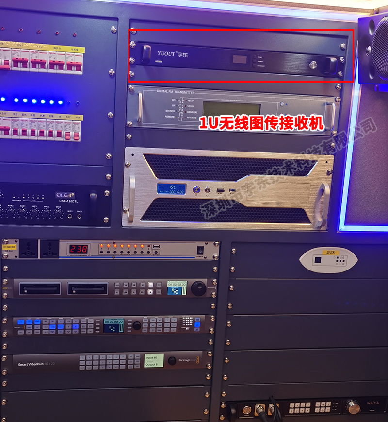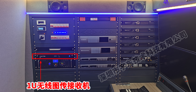 直播車內(nèi)就是一個(gè)移動(dòng)工作室,可以把我們的極光2000U接收機(jī)固定在機(jī)架上,標(biāo)準(zhǔn)的1U尺寸,外置1098天線,可移動(dòng)裝車頂,4臺(tái)發(fā)射機(jī)可以把4攝像機(jī)信號(hào)穩(wěn)定傳輸?shù)街辈ボ噧?nèi)。